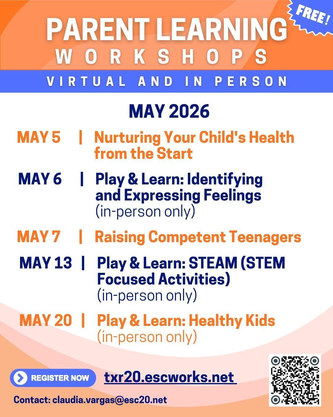 ¿Está su hijo/a listo/a para la emocionante aventura del kínder? Acompáñenos en un taller informativo e interactivo sobre cómo prepararse para el kínder, presentado en colaboración con el Programa de Primera Infancia de KLRN. Esta sesión le ayudará a comprender los hitos clave del desarrollo, las habilidades de preparación escolar y las estrategias para facilitar la transición al kínder, tanto académica como emocionalmente. ¡Trabajemos juntos para que el primer día de kínder sea un comienzo tranquilo y seguro para su hijo/a!